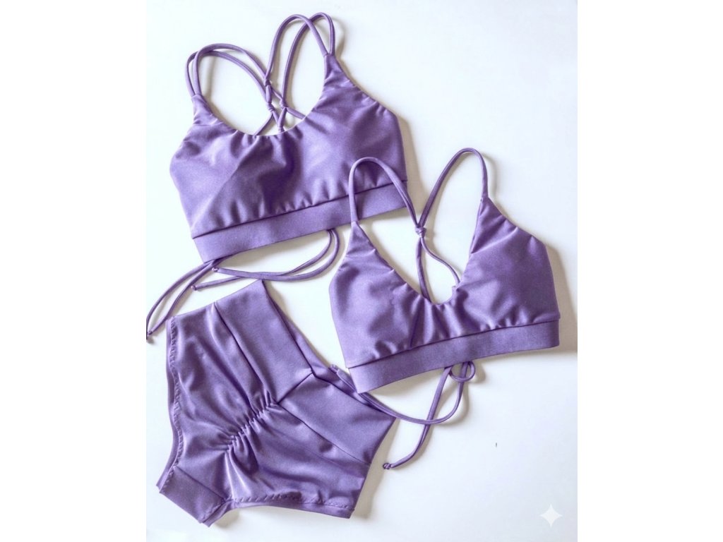 Lesklá lila lycra dodává modelu jemný, ale luxusní nádech.
